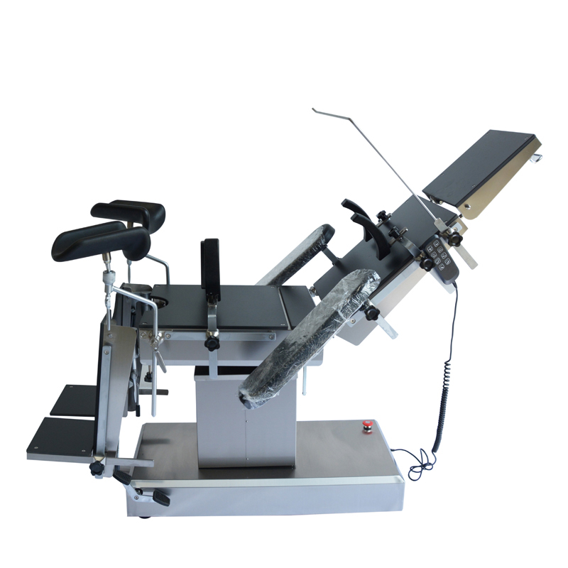 3. Funksjonene for bordløfting, bakover og forover vipping, venstre og høyre vipping og translasjon styres alle av en enkelt elektrisk skyvestang; Opp- og nedfellingen av bakplaten drives og styres av en dobbel elektrisk skyvestang.