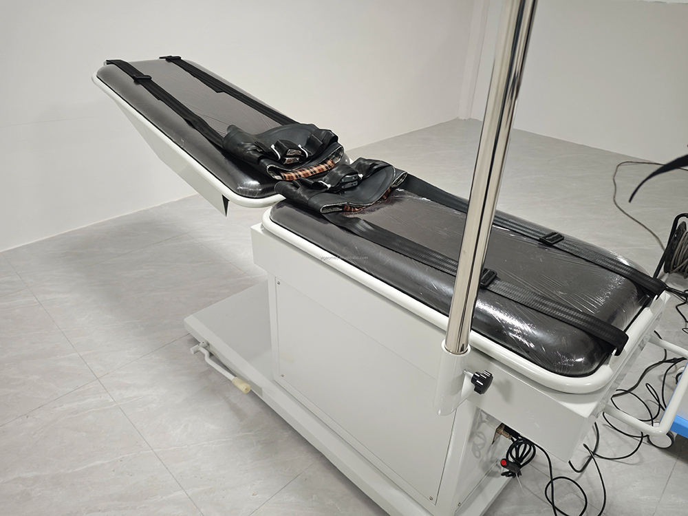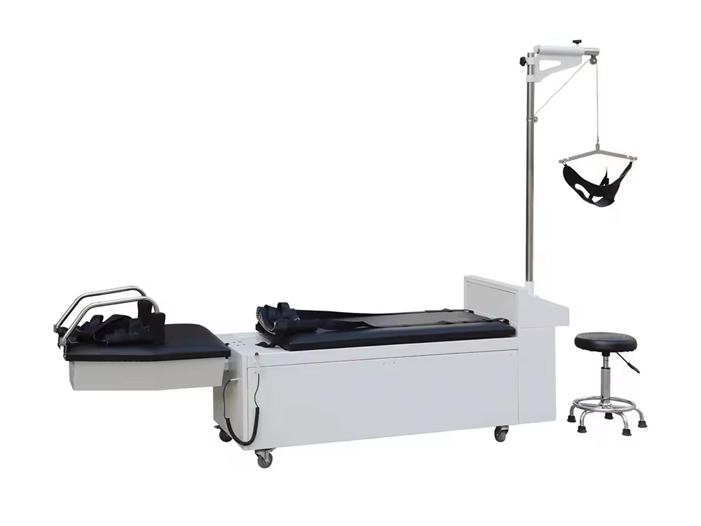 2. Cervical traction funksjon: maksimal trekkraft er 250 mm, maksimal trekkraft er 294N under automatisk trekkraft, og trekkraften avhenger av pasientens følelse under manuell trekkraft.
