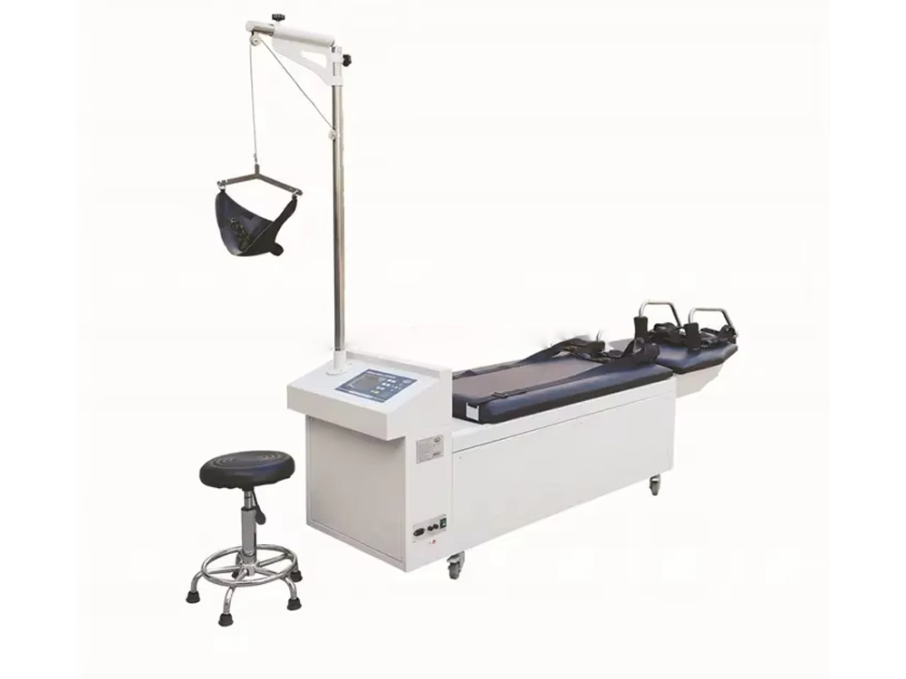Anvendelsesområde: Dette produktet er egnet for behandling av cervikal og lumbal spondylose. Den kan utføre kontinuerlige og intermitterende trekkmoduser, kontrollert av dataprogramvare, og inngangssignaler gjennom berøringstaster. Den har overvåkingsprogram trekkprosessbeskyttelse for å sikre pasientsikkerhet. Korsryggen og nakkevirvlene kan trekkes samtidig.