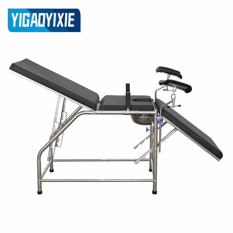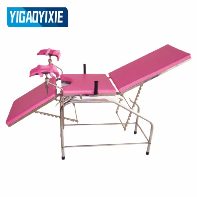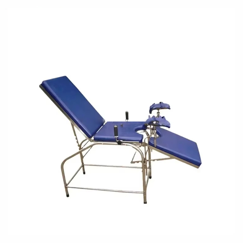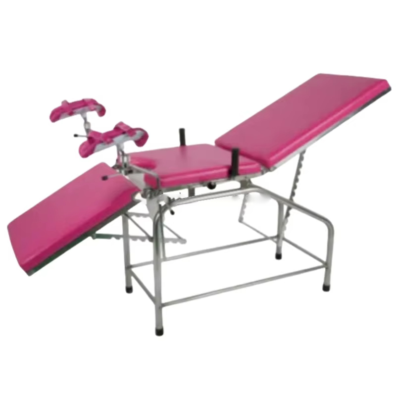 YGF2005BA Ordinary Gynecological Delivery Bed er en medisinsk enhet designet for gynekologisk undersøkelse, diagnose, kirurgi og levering, og er mye brukt på sykehus og obstetriske og gynekologiske klinikker. Leveringssengen består av ryggbrett, hoftebrett, benbrett og sengekropp. Løfting og senking av ryggbrettet og benbrettet justeres ved å trekke i skralle. Den er enkel å betjene og stabil. Vinkelen kan justeres etter ulike behov for å sikre at mor får best mulig støtte under undersøkelse, fødsel eller operasjon. Hoveddelen er laget av høyfast rustfritt stål, som har utmerket korrosjonsbestandighet og holdbarhet, en glatt overflate, er lett å rengjøre og desinfisere, og oppfyller medisinske og helsemessige standarder.