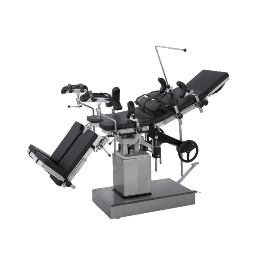 YGS3001A Ortopedi hydraulisk operasjonsbord er en høyytelses medisinsk enhet designet for ortopedisk kirurgi. Den har en solid struktur og fleksibel justering, og kan gi pasientene stabil støtte og presis posisjonsjustering. Operasjonsbordet består av sengegavl, ryggbrett, midjebrett, skipsbord og delt benbrett. Løfting, tilting og justering av hver komponent kan kontrolleres nøyaktig av håndsveivde gir, snekkegir og stativsystemer for å sikre komforten og stabiliteten til pasientene under operasjonen. Det hydrauliske løftesystemet drives av en fotbetjent hydraulikkpumpe, som er enkel og stabil å betjene og kan møte behovene til hyppige justeringer. Bordplaten på operasjonsbordet er laget av spraybelagt karbonstål, som er korrosjonsbestandig og lett å rengjøre, mens bunnen og søyleskallet er laget av rustfritt stål for å sikre langsiktig og stabil bruk av utstyret.