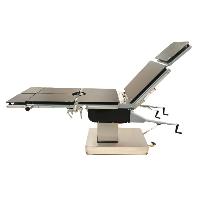 YGS3008A Spine Hydraulic operasjonsbord er et høyytelses medisinsk utstyr, som er mye brukt i ulike operasjoner som ryggrad, hode og nakke, bryst og mage, perineum, lemmer, obstetrikk, gynekologi, oftalmologi, otolaryngologi og ortopedi. Operasjonsbordet består av hodegjerde, ryggbrett, midjebrett, hoftebrett og delt benbrett, med fleksible justeringsfunksjoner, inkludert bretting opp og ned, vipping foran og bak, venstre og høyre vipping av ryggbrettet og benbrettet, og presis kontroll gjennom det håndsveivede giret, ormeutstyret og stativsystemet for å sikre stabiliteten og komforten til pasientens posisjon under operasjonen. Det hydrauliske løftesystemet drives av en fotbetjent hydraulikkpumpe, som er enkel å betjene, stabil og støyfri, og dekker behovene til operasjoner som krever hyppige høydejusteringer. Dobbeltlagsstrukturdesignet støtter røntgenfotografering, letter bildeundersøkelser og sikrer nøyaktigheten av operasjonen. Operasjonsbordet bruker en spraybelagt bordplate i karbonstål og en base og søyleskall i rustfritt stål, som har god korrosjonsbestandighet og holdbarhet, noe som sikrer langsiktig og stabil bruk av utstyret. Det overordnede designet fokuserer på sikkerhet og stabilitet, og gir legene en presis operasjonsplattform samtidig som sikkerheten og komforten til pasientene sikres. Det er et ideelt valg for operasjonsrom med flere avdelinger.